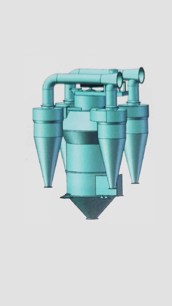 物料通過分選機上部的進料口進入選粉室內(nèi),物料落入轉(zhuǎn)動的撒料盤上,在離心力作用下,向四周均勻拋出,分散的物料在外接風機的高速氣流作用下,粗重顆粒被甩向選粉室的內(nèi)壁,失去動能后沿壁面滑下,在分選機底部排出腔體,其余粒度較細的顆粒被旋轉(zhuǎn)上升的氣流卷起,穿過分級轉(zhuǎn)子的葉片進入高效旋風分離器中,作為成品被收集。