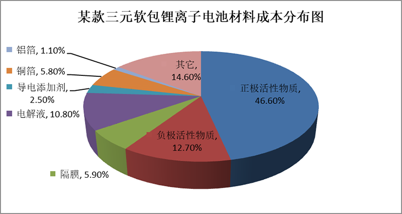 某款三元軟包鋰離子電池材料成本分布圖